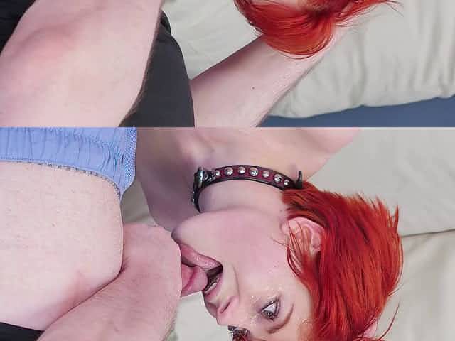 Redhead slave girl Ava Little abused and mouth fucked by a perv