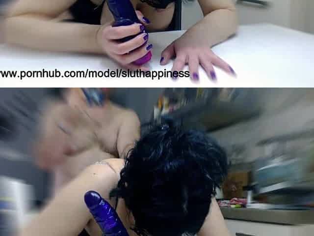 Kinky Slave Fucks her Cunt and Cums in a Glass