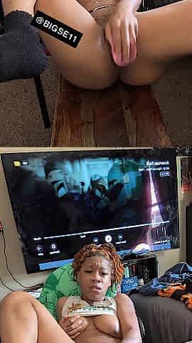 black thot plays with snatch in roommates baths