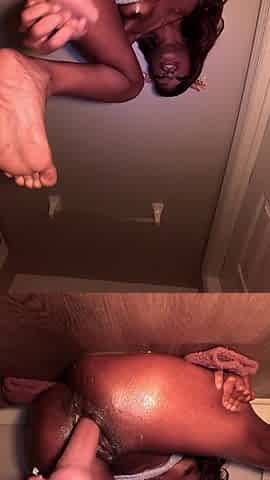 black thot plays with twat in roommates bath