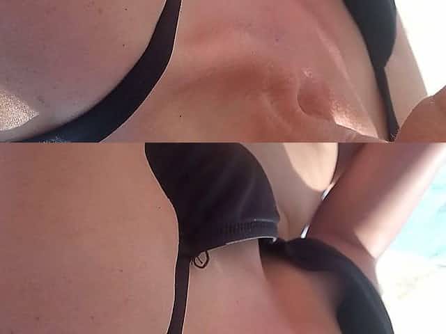 Wife’s nipple slip shows – big nipples at pool – bikini slip