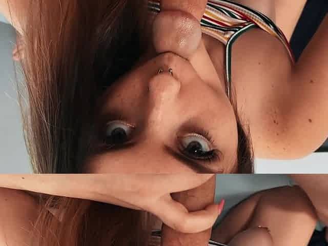 Amateur slut gives sloppy blowjob with Ahegao expression