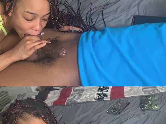 Horny Ebony wake her Step-brother up to Sloppy Blowjob