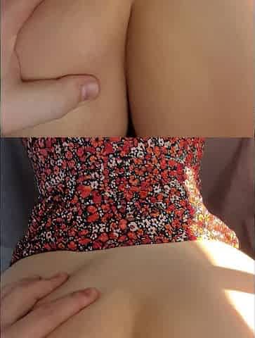 This gorgeous 18-year-old with tan lines and a neatly trimmed pussy