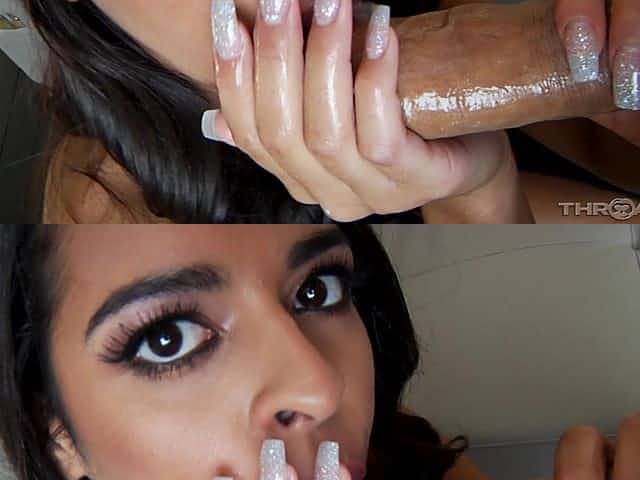 Naughty Latina babe Vienna Black gives a sloppy blowjob close up POV