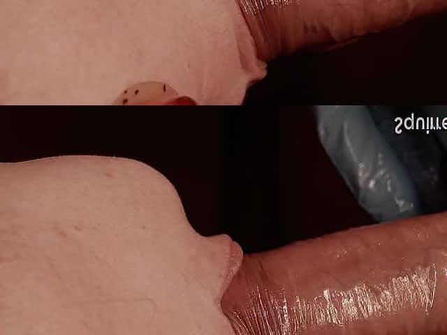slow motion art sucking large shlong in rubber gloves