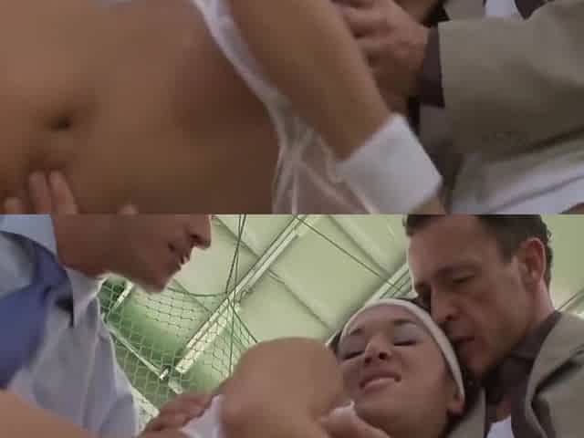 Frank Gun, James Brossman And Lea Magic In Redhead Slut Double Penetrated On The Tennis Court