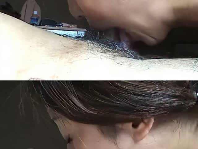 Slutty Japanese GF let her guy tickle her hairy pussy a lot