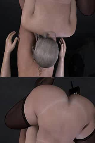 That mega-slut's X-rated training includes fellating a hard, pulsing cock