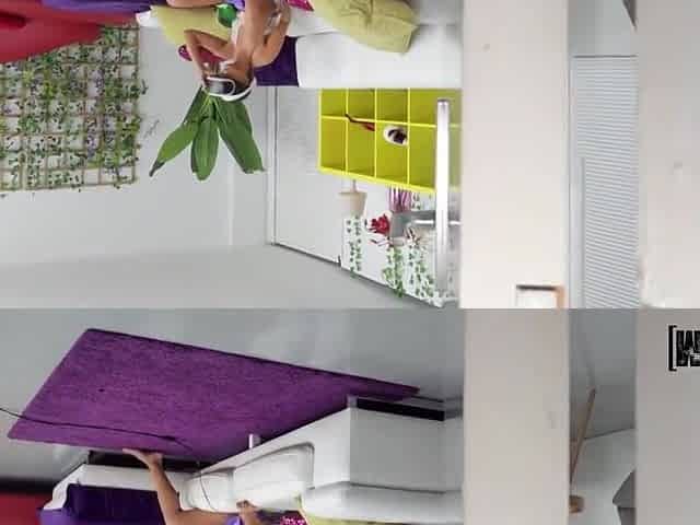 Hot sex on the kitchen counter with a horny brunette