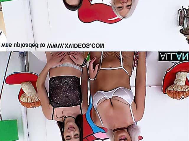 Elle Rose, wears white lingerie for an anal threeway
