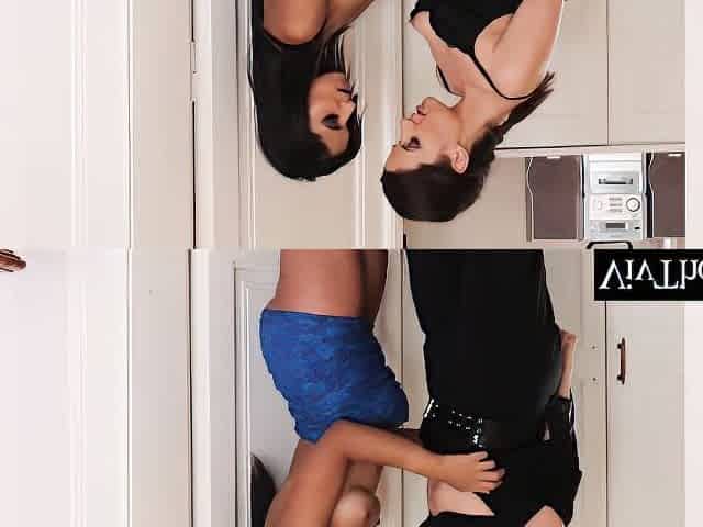 Angel Smalls and Alexis Fawx licking by the Christmas tree