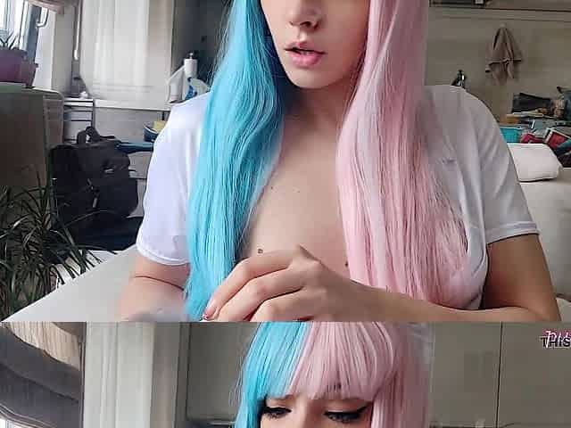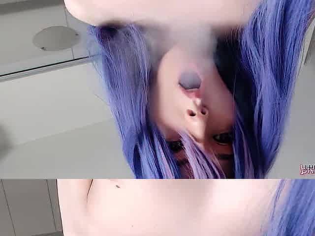 Blue Hair Step Sis Smokin' for u with no brassiere (ask me for full vid)
