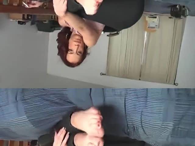 Red haired chick was smoking a cigarette and giving a sensual footjob to her lover