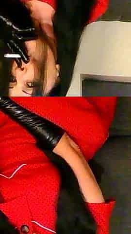 Housewife Smoking in Black Gloves