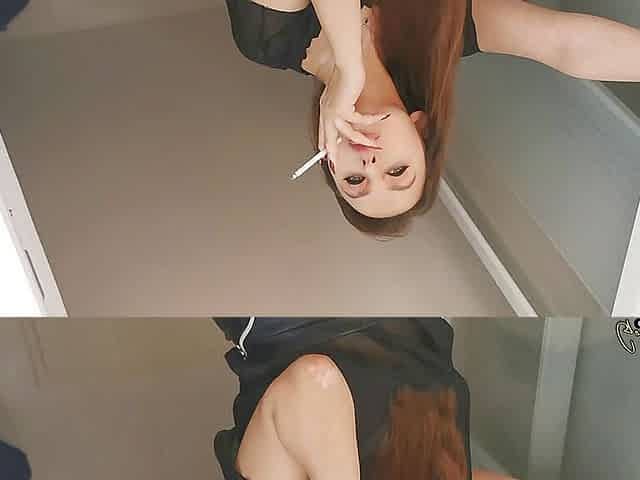 Liza Virgin smokes a cigarette and cums with a squirt