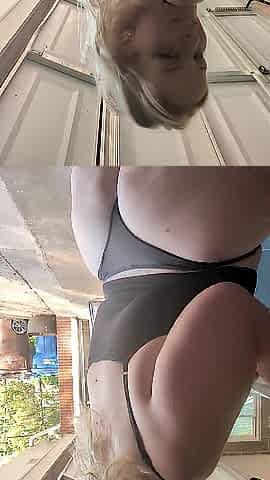 Smokin' and masturbate nude merely in coat and nylons on balcony