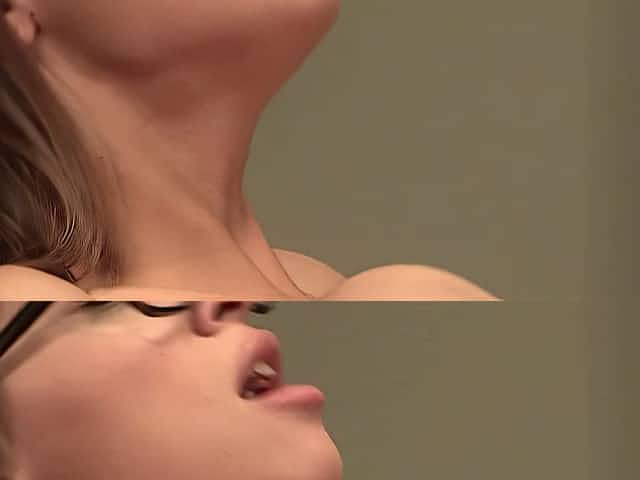 A Blonde In Leather Is Double Penetrated By A Man With A Strapon Until Cumshot