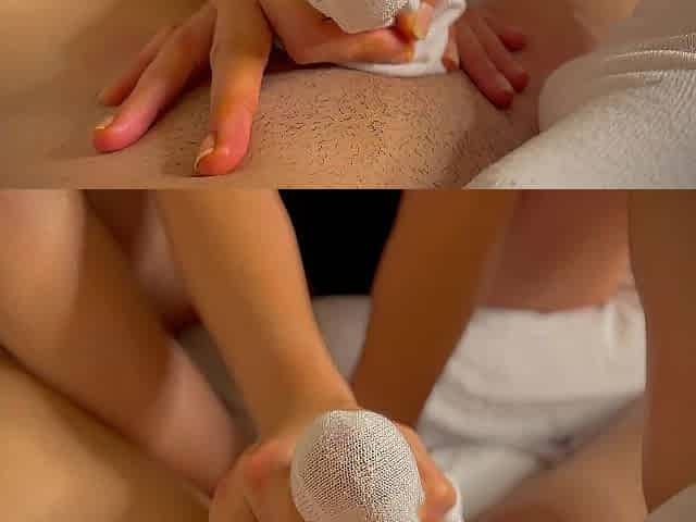 Beautiful brunette gets a good pov handjob with socks on.