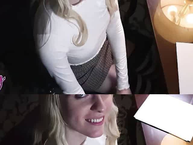 Sweet blonde Emma Rosie drops her thong to be fucked balls deep