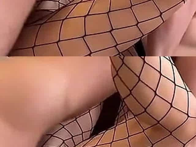 Hairy Chinese babe in fishnet socks likes his cock way up