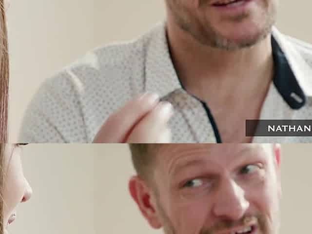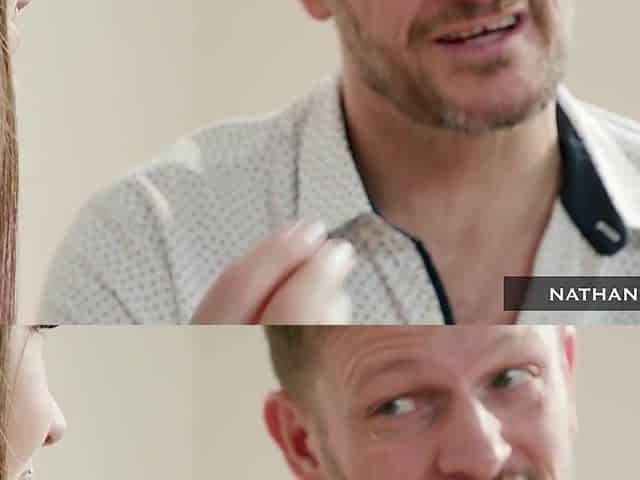 Brunette Abbie Maley with natural tits giving a nice blowjob
