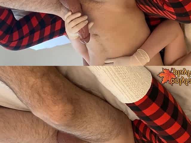Gloved reacharound handjob: a tantalizing treat for your senses!