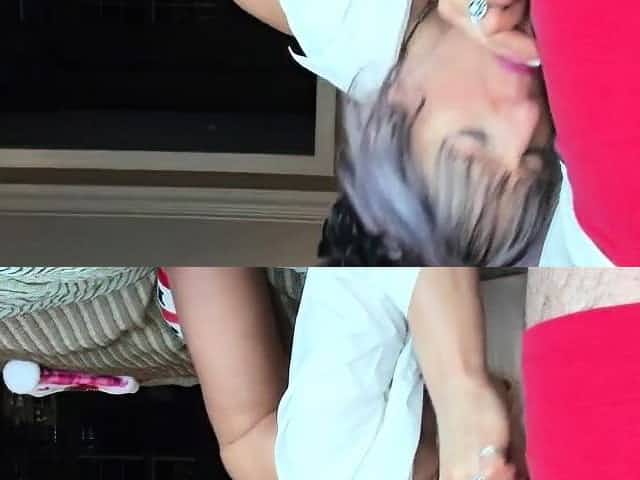 SLUTTY TANNED MILF IN KNEE HIGH SOCKS BLOWJOB CUM SWALLOW