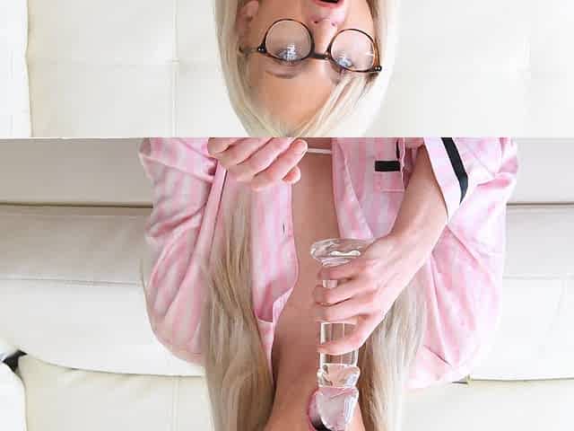 Watch horny blonde chick Tallie pleasuring her pussy ona sofa