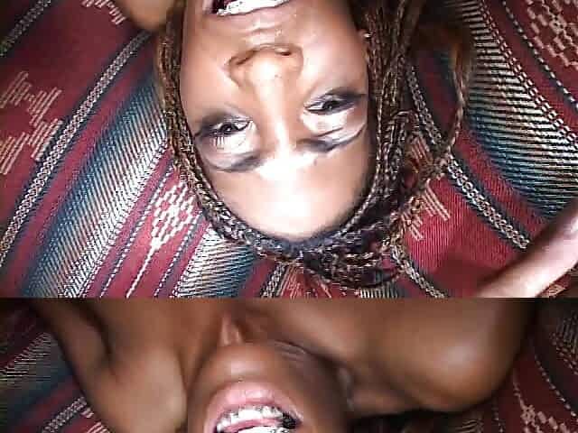 "Black hunk slurps ebony babe's coochie before drilling her on the sofa"