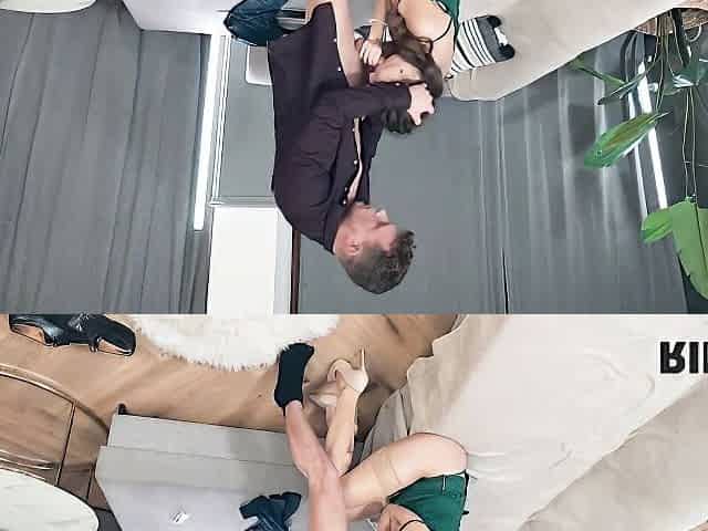 Occulted camera caught step-daughter fucked inside the sofa showing feet soles