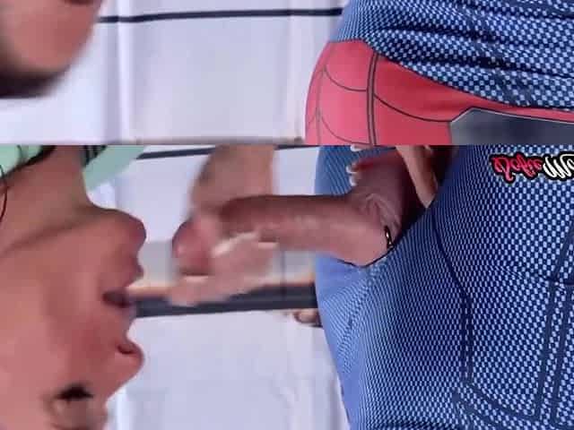 Naughty aunty Sofie Marie sucks Spidermans huge hard cock