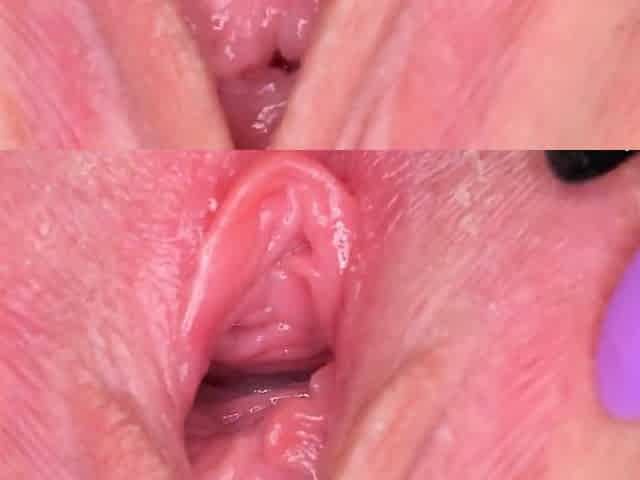 Innocent sweetie is gaping soft twat in closeup and having o