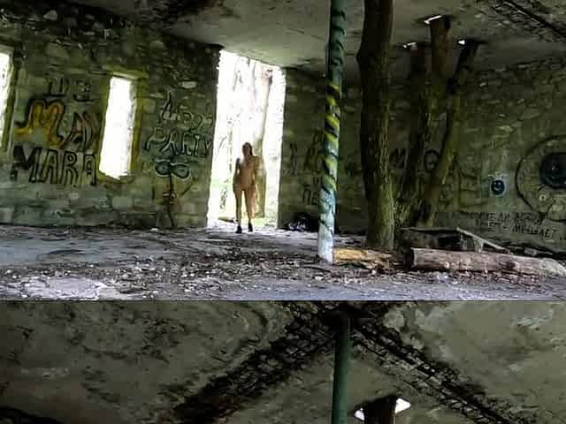 Exhibitionist Blonde Teen Walks Through Abandoned Buildings