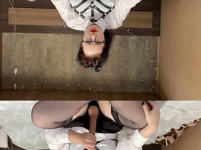 Femdom: glass sex-toy in taut vagina POV