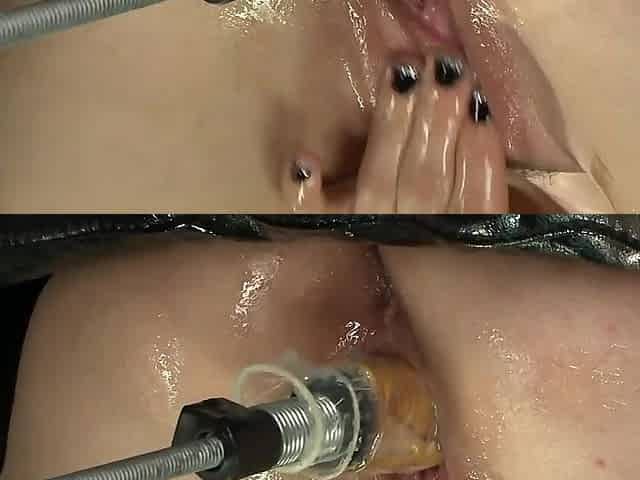 Bound squirting blonde fucks machine