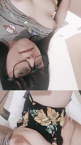 Cute solo girl with glasses revealed her massive natural jugs just for you