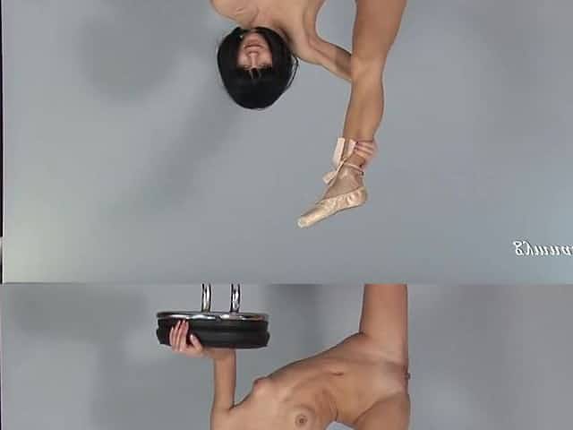 Russian flexible teen Rina Sunkor spreads her legs to show her slit