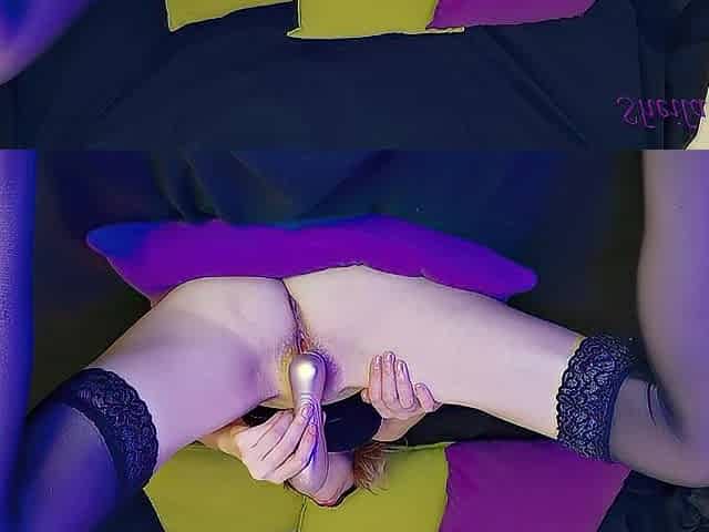 Blonde Squirts with Dildo in Ass and Fingers Pussy on Webcam