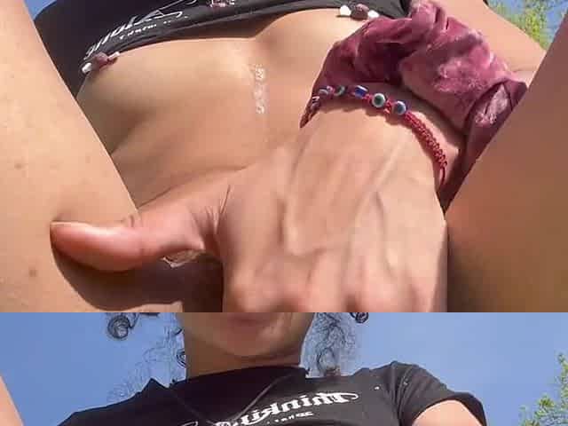 Horny Wife Lena Risky Squirting Masturbation at the Campsite