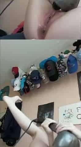 Solo Squirt Compilation: Grey shorts, large sex tool on mirror, close up cunt discharged