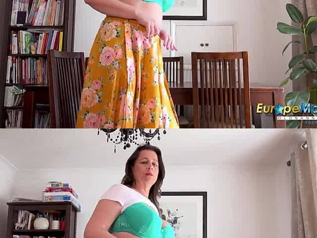 Chubby legs, large melons and hawt ass. This is the sexy striptease show from aged Eva Jayne.