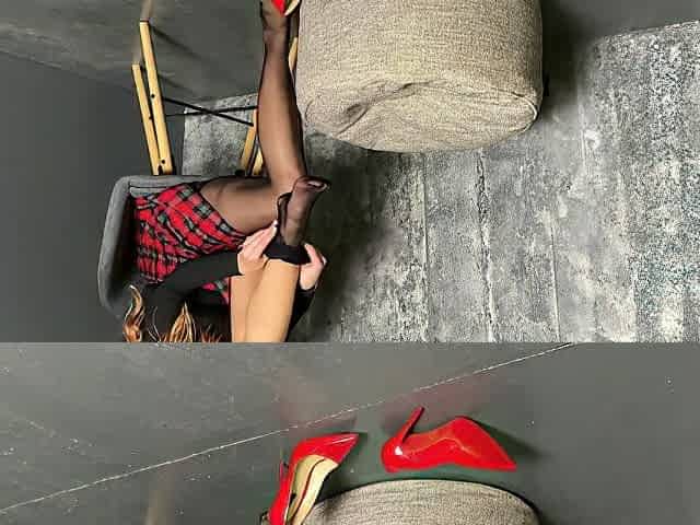 4k Mini Skirt & Black Stockings With Red High Heels #19