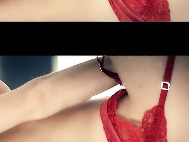Sexy brunette slut in red undies fucking herself with a sex toy