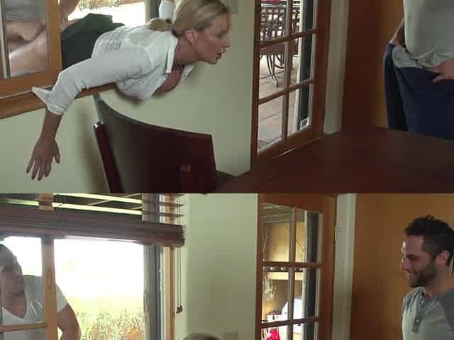 Blonde step mom sits on all four for her step son's huge dong