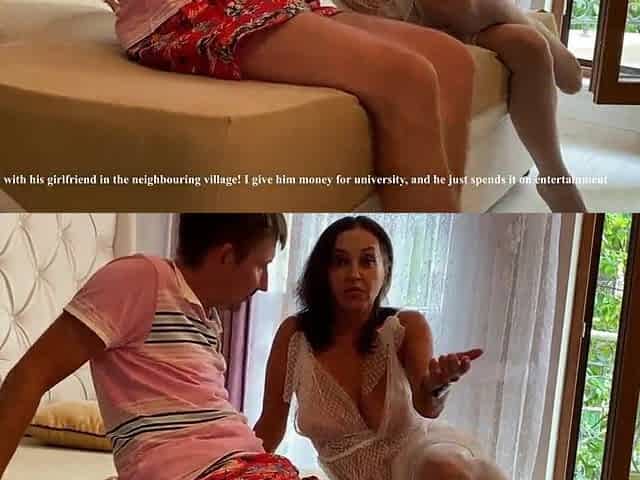 Caught her stepson stroking and helped him cum