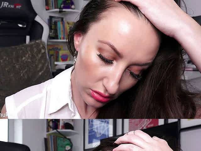 Wank all over Hot Brunette Secretary Sophia Smith Juicy Muff in Sexy Nylons and Heels