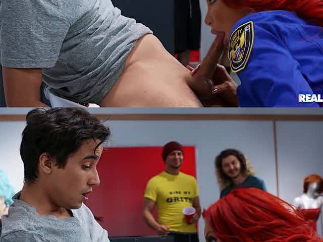 Busty cop Nicolette Shea gives blowjob to Ricky Spanish