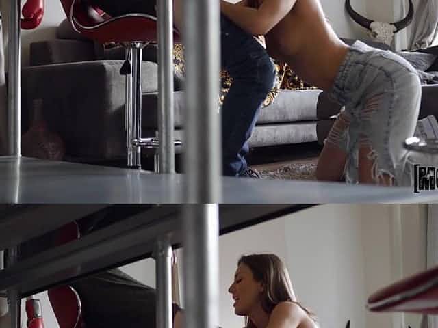 Alexis Fawx is sucking Spanish’s cock on the table