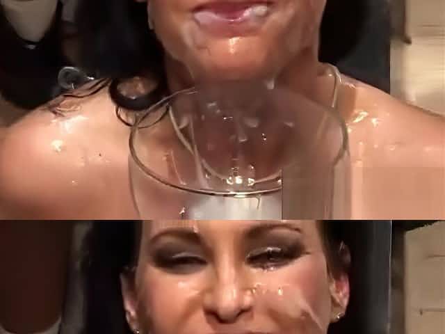 Bukkake Cumfest, Gorgeous Brunette Covered In Cum, Swallows The Lot!
